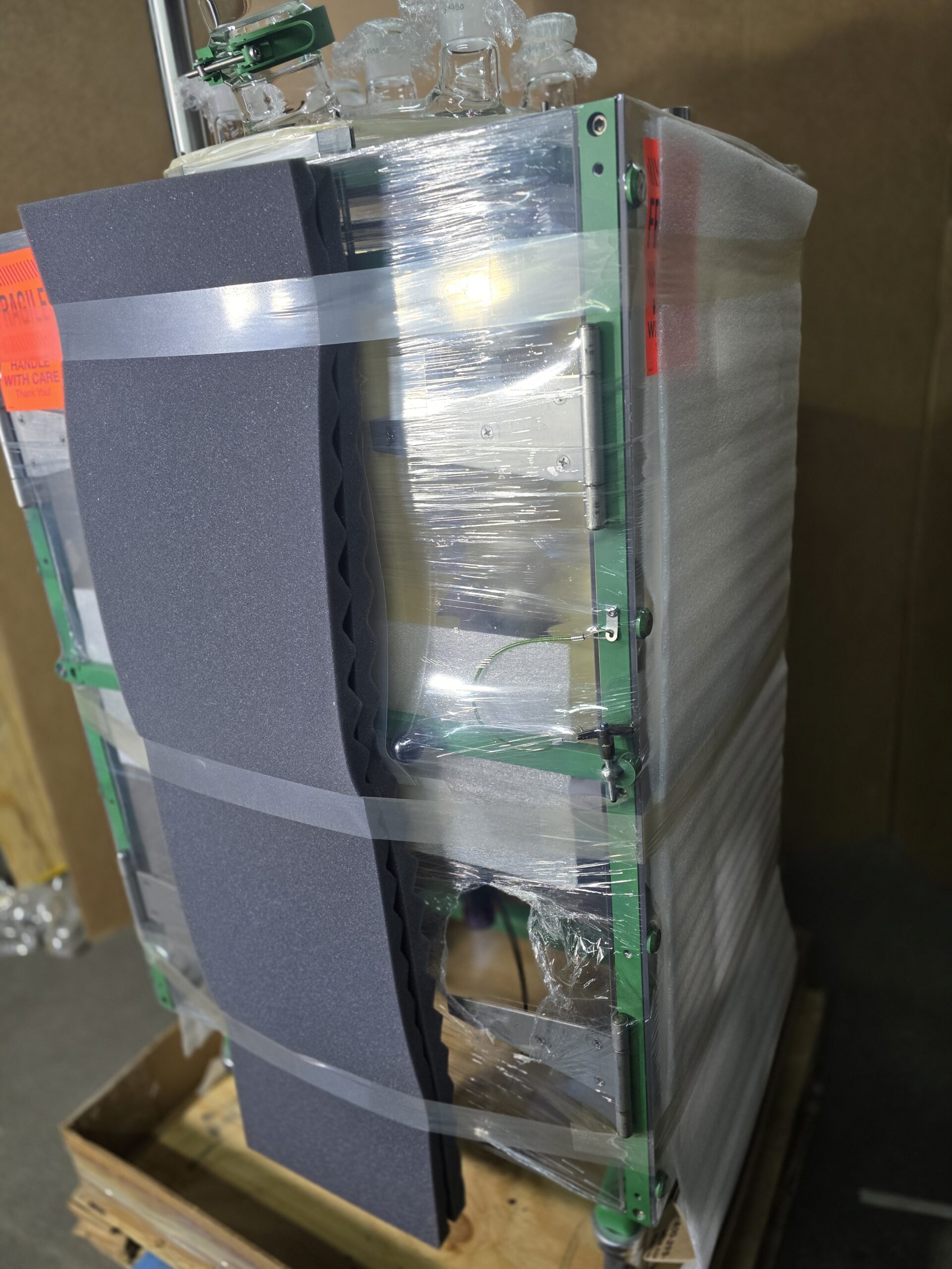 50L Squatty, Low Profile, glass reactor system with 400mm flange, on our innovative Kwik Mount support frame.