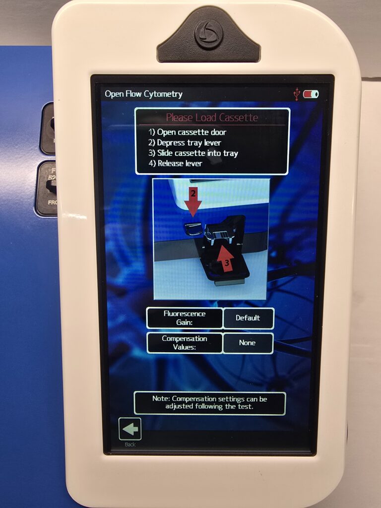 The instrument relies on disposable cassettes for sample handling, which alleviates the need for flow cell cleaning and fluidics maintenance. The instrument is small enough to be portable between the lab bench and the hood. A touchscreen interface and simplified GUI allows for ease of operation without extensive training.