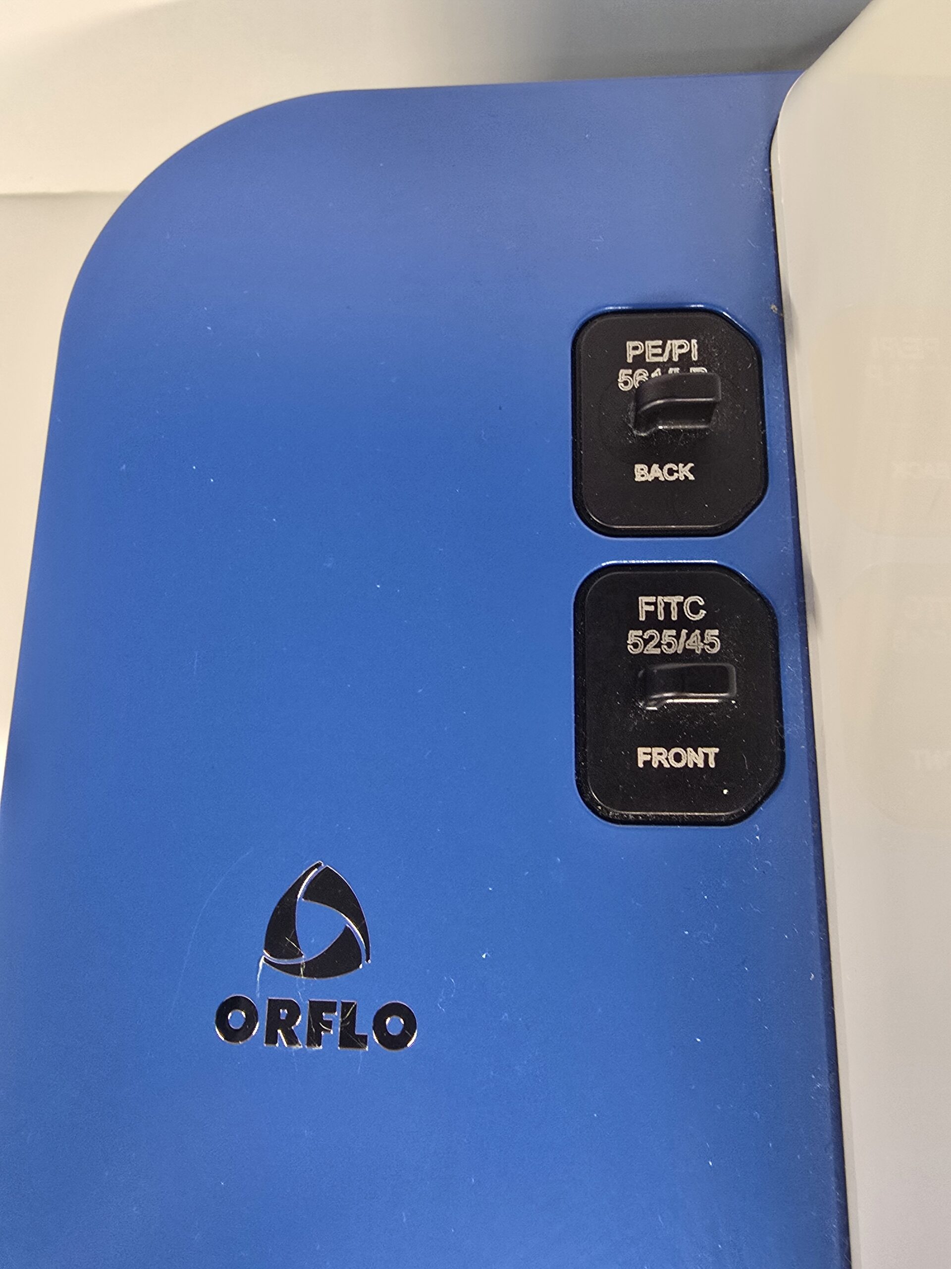 - Optical Detection Range: PMT1: 525/45 nm (e.g FITC, GFP, Alexa 488); PMT2: User-swappable, either 561 nm LP (e.g PE) or 646nm/LP (PI, avoids need for compensation)
