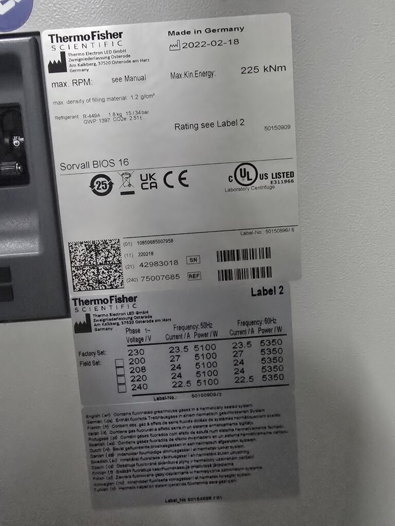 75007685 = Sorvall BIOS 16 Centrifuge (Manufacture Year = 2022)