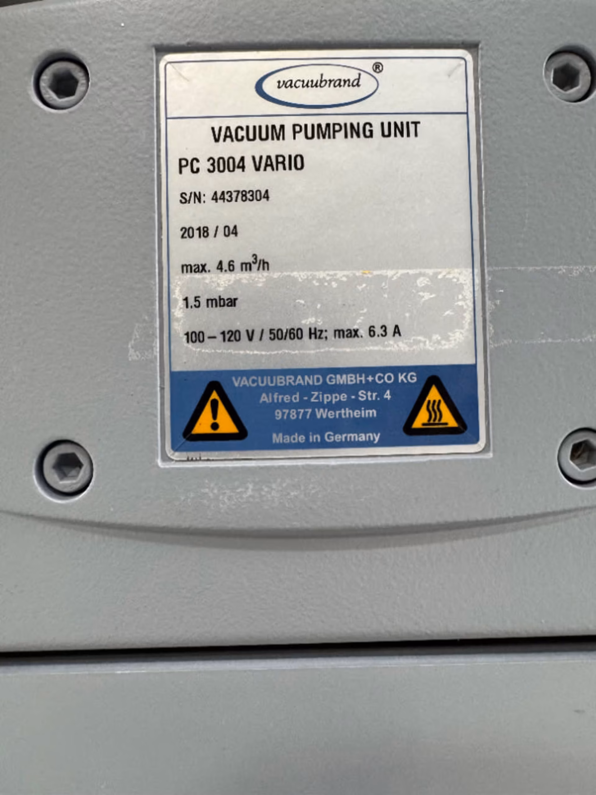 Ultimate vacuum | 1.5 mbar / 1.1 torr | |